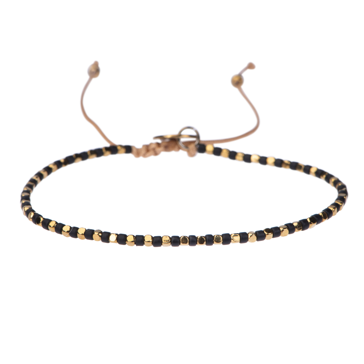Deze mooie armband gemaakt van miyuki kraaltjes in de kleuren zwart en goud is verstelbaar en past om iedere pols. Dit armbandje is makkelijk zelf aan en uit te doen.