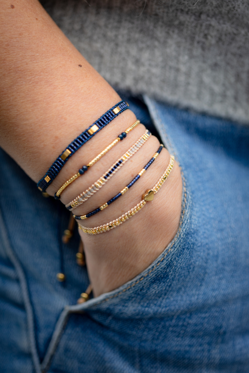 Dit mooie armbandje gemaakt van miyuki kraaltjes in de kleur blauw / goud en is verstelbaar en past om iedere pols. Dit armbandje is makkelijk zelf aan en uit te doen.