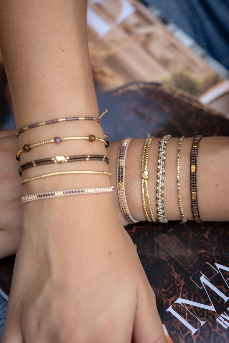 This beautiful bracelet made of miyuki beads in the color brown / gold is adjustable and fits any wrist. This bracelet is easy to put on and off yourself.