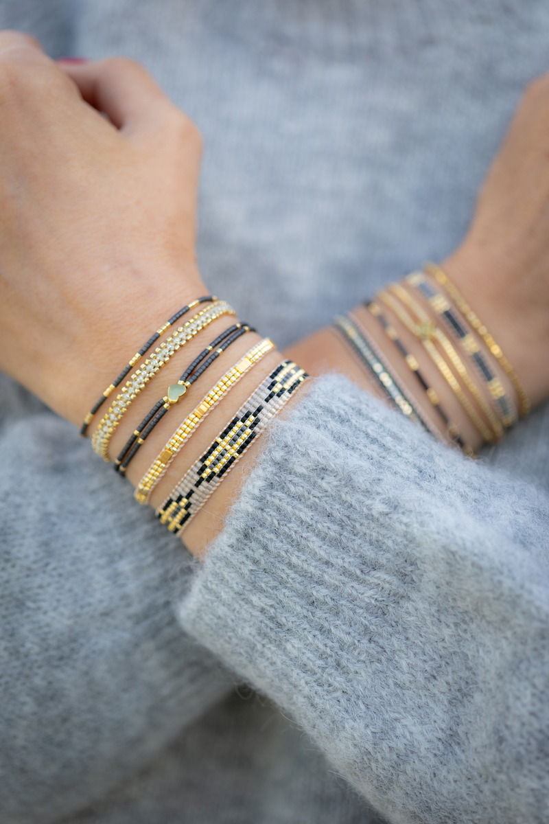 This beautiful bracelet made of miyuki beads in the color gold is adjustable and fits any wrist. This bracelet is easy to put on and off yourself.