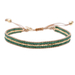 This beautiful bracelet made of miyuki beads in the colors sea/green, peach, aqua and gold is adjustable and fits any wrist. This bracelet is easy to put on and off yourself.