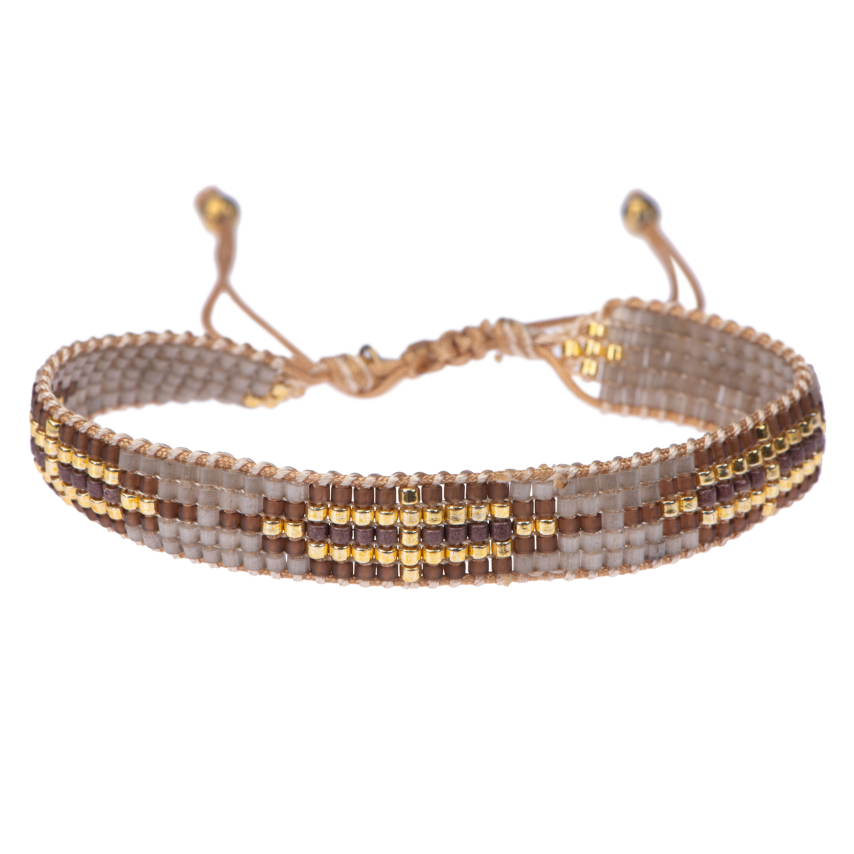 This beautiful "love" bracelet made of miyuki beads in the color bronze and gold is adjustable and fits any wrist. This bracelet is easy to put on and take off yourself.