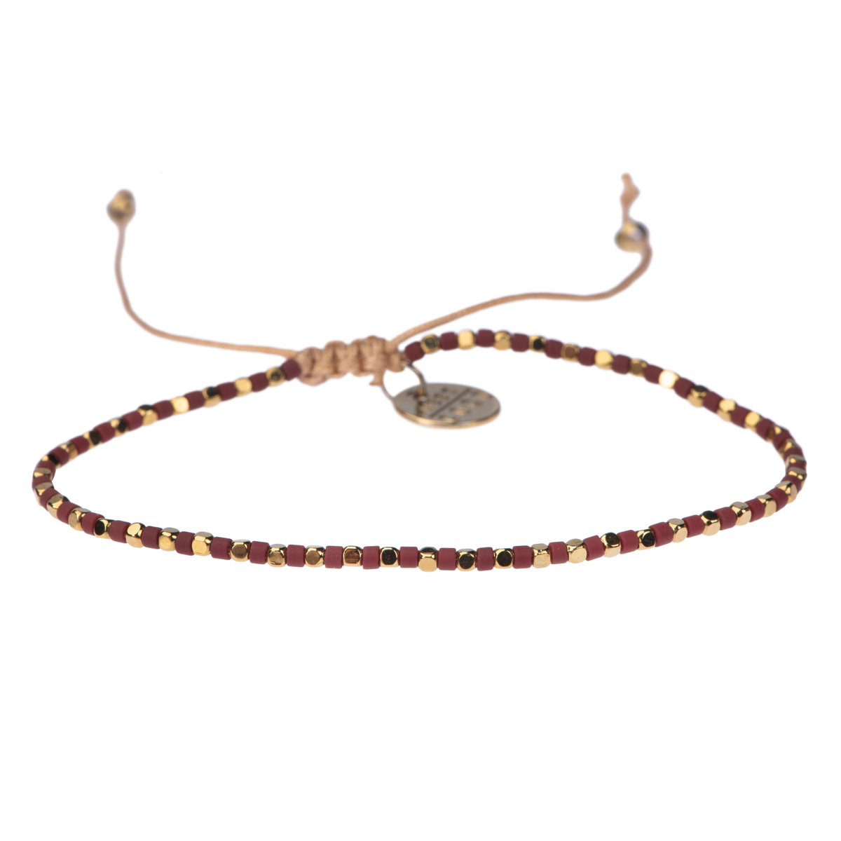 This beautiful bracelet made of miyuki beads in the color gold with red crystal is adjustable and fits any wrist. This bracelet is easy to put on and off yourself.