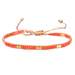 Dit mooie armbandje gemaakt van miyuki kraaltjes in de kleuren peach-orange, gold with pearls is adjustable and fits any wrist. This bracelet is easy to put on and take off yourself.