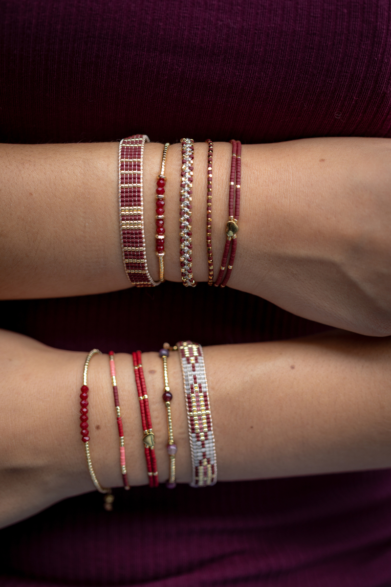 This beautiful bracelet made of miyuki beads in the color red / gold is adjustable and fits any wrist. This bracelet is easy to put on and off yourself.