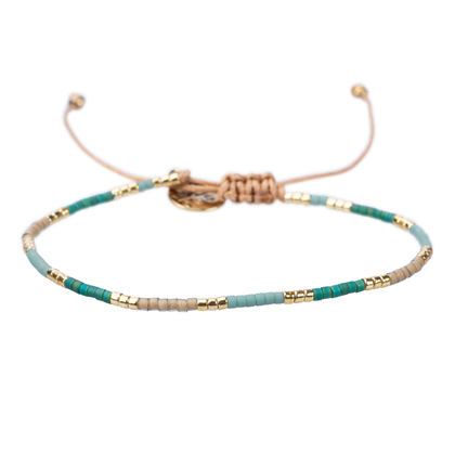 This beautiful bracelet is made of miyuki beads in the color green and gold is adjustable and fits any wrist. This bracelet is easy to put on and take off yourself.