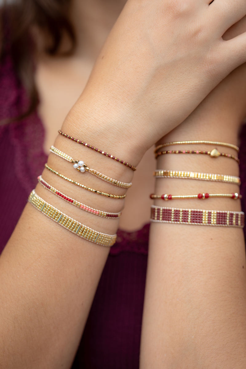 This beautiful bracelet made of miyuki beads in the color gold / pearld is adjustable and fits any wrist. This bracelet is easy to put on and off yourself.